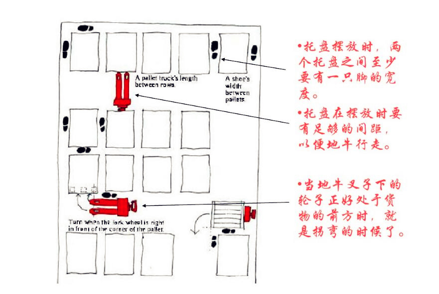 6、記住手柄是活動的,所以在載重貨物過程中盡量以拉的方式促使叉車以及貨物產(chǎn)生位移;